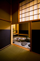 今年の11日(日)と12日(祝)に、孤丘で初釜が催されました。 「初釜は新年最初に行なうお茶会で、お濃茶・お薄茶・そしてお懐石料理を召し 上がって、新年をお祝いするお茶会です。一月中旬頃に行われる初釜は、普段は なかなか会えない稽古仲間がそろい、各々の晴れ着姿が華やかな雰囲気を添え る行事です。特定の人だけを招いて行われる茶事のように畏まるものでもなく、わ きあいあいと楽しめ、花のある催しといえるでしょう。」(四季折々、日本の歳時記よ り) 孤丘にはお茶室があります。孤丘の茶室は、匠和心傳庵 木下(寺田)棟梁が精 魂を込めて建てた数寄屋造りの茶室です。 広間(京間八畳)は、琵琶台付きの床の間、土壁に腰貼りがなされているなど、 数寄屋作りの茶室が持つ独特の雰囲気を味わえます。 小間は、木下棟梁が京都で保管している材料の中から、特に吟味した銘木を使 って造った三畳台目の茶室でございます。槐(えんじゅ)の床柱やのヘギ板の天井 の景色などに、匠の技を堪能することができます。 広間では、蕎麦懐石料理を椅子席で召し上がれます。露地の蹲踞(つくばい)の 見える広間でのお食事は、心癒されるひとときを楽しめると思います。 なお、小間はお茶事以外でご利用することはできません。 茶室広間での蕎麦懐石料理のページヘ